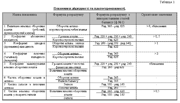 3.3.4.3. Таблиця 3. Показники ліквідності та платоспроможності
