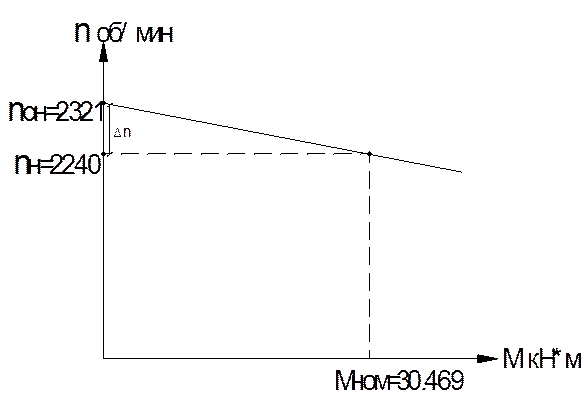 1.Определяем номинальный момент двигателя Мном=9750 Рн / nн =9750·7000/2240=30469 кН·м С'е= Uн/ Ф·nн =220 ·10 /575·2240=17, 08 Се=0, 965· С'е=0, 965·17, 08=16, 48. 2.Определяем скорость идеального холостого хода в номинальном решении. nон = Uн/ Се· Ф=220 ·10 /16, 48·575=2321 об/мин.