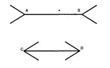 згляните на рисунок. Какой отрезок, по-вашему, длиннее, АВ или CD?