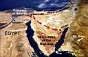 Путь к северу израильтянам преграждала египетская военная крепость. Действительно, к северу от входа в ущелье Вади Ватир мы обнаруживаем древнюю крепость, которая возможно, является местом, упомянутым В Библии как Мигдол (Исх.14: 2). К югу от побережья склоны гор спускаются непосредственно к морю, мешая тем самым движению на юг.
