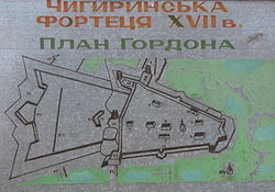 Смерть Б.Хмельницького 1657-го року була початком занепаду Чигирина. Схема фортеці на Замковій горі.