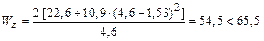 коэффициент “2” означает, что рассматриваются два швеллера, с равными моментами инерции относительно нейтральной оси. Расстояние от нейтральной оси Z до наиболее удаленного растянутого и сжатого волокна будет одинаковым и равным ширине полки швеллера:
