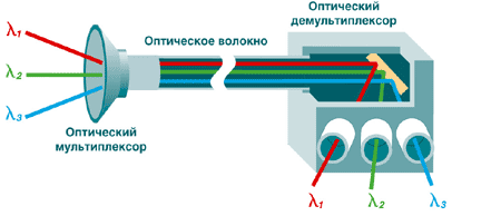 где введены коэффициенты M(l) и N(l) - удельные материальная и волноводная дисперсии соответственно, а Dl (нм) - уширение длины волны вследствие некогерентности источника излучения. При распространении импульсов света по волокну наблюдается их расплывание, или явление дисперсии. Чем меньше значение дисперсии, тем больший поток информации можно передать по волокну. 2) Они включают в себя оптические соединители, розетки, шнуры, распределительные панели, кроссовые шкафы, соединительные муфты, оптические разветвители, аттеньюаторы, системы спектрального уплотнения и т.д. то есть все, что необходимо для обеспечения передачи оптического сигнала по волоконно-оптическому кабелю от передатчика к приемнику. Оптический соединитель – это устройство, предназначенное для соединения различных компонентов волоконно-оптического линейного тракта в местах ввода и вывода излучения. Такими местами являются: оптические соединения оптоэлектронных модулей (приемников и передатчиков) с волокном кабеля, соединения отрезков оптических кабелей между собой, а также другими компонентами. Одним из наиболее важных устройств, относящихся к пассивным компонентам ВОЛС, является оптический разветвитель. Оптический разветвитель представляет собой в общем случае многополюсное устройство, в котором излучение, подаваемое на часть входных оптических полюсов, распределяется между его остальными оптическими полюсами. Основные категории оптических разветвителей следующие; древовидный разветвитель; рвездообразный разветвитель; ответвитель. Устройство волнового (спектрального) уплотнения WDM – WDM-фильтр -выполняет функции мультиплексирования MUX (объединение) или демультиплексирование DEMUX (выделения или фильтрации) оптических сигналов разных длин волн- каналов- в одно волокно из множества волокон или из одного волокна в множество волокон. Оптический изолятор обеспечивает пропускание света в одном направлении почти без потерь, а в другом направлении (обратном) с большим затуханием. Аттенюаторы - используются с целью уменьшения мощности входного оптического сигнала. №9 1) Спектральное уплотнение каналов — технология, позволяющая одновременно передавать несколько информационных каналов по одному оптическому волокну на разных несущих частотах. Технология WDM позволяет существенно увеличить пропускную способность, причем она позволяет использовать уже проложенные волоконно-оптические линии. Благодаря WDM удается организовать двустороннюю многоканальную передачу трафика по одному волокну. Преимуществом DWDM-систем является возможность передачи высокоскоростного сигнала на сверхдальние расстояния без использования промежуточных пунктов (без регенерации сигнала и промежуточных усилителей)[3]. Эти преимущества крайне востребованы для передачи данных через малонаселенные земли. 2) Оптический соединитель – это устройство, предназначенное для соединения различных компонентов волоконно-оптического линейного тракта в местах ввода и вывода излучения. Такими местами являются: оптические соединения оптоэлектронных модулей (приемников и передатчиков) с волокном кабеля, соединения отрезков оптических кабелей между собой, а также другими компонентами. К соединителям предъявляют следующие требования: малые вносимые потери; малое обратное отражение; уст
