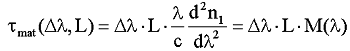 где Lc - длина межмодовой связи (для ступенчатого волокна порядка 5 км, для градиентного - порядка 10 км). При расчете полосы пропускания W можно пользоваться формулой W = 0, 44 / t Измеряется полоса пропускания в МГц*км. Физический смысл W - это максимальная частота модуляции передаваемого сигнала при длине линии 1 км. Хроматическая дисперсия состоит из материальной и волноводной составляющих и имеет место при распространении как в одномодовом, так и в многомодовом волокне. Однако наиболее отчетливо она проявляется в одномодовом волокне, в виду отсутствия межмодовой дисперсии. Материальная дисперсия обусловлена зависимостью показателя преломления волокна от длины волны. В выражение для дисперсии одномодового волокна входит дифференциальная зависимость показателя преломления от длины волны.