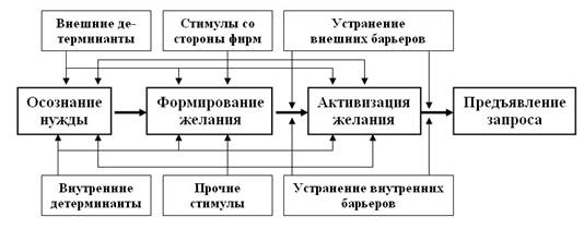 Барьеры - препятствия, не позволяющие субъекту сформировать и предъявить запрос. Классификация барьеров формирования запроса: 1) Внешние • дальнего окружения ü накладываемые социумом ü накладываемые географическим местоположением ü накладываемые отсутствием товара • ближнего окружения ü накладываемые неодобрением семьи, близких ü накладываемые коллегами по работе ü накладываемые производителем 2) Внутренние, присущие потребителю • Состояние здоровья (физические ограничения) • Финансы • Несоответствие выгод и цены на товар • Дефицит времени • Ощущение риска, связанное с приобретением товара • Психологические проблемы (страхи)