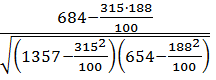 Полученные значения 5, 57; 5, 11; 5, 94 и т.д.являются точками регрессии у/x (у по х). С использованием точек строится эмпирическая линия регрессии (рис.13). Суммы частот в столбцах nx умножают на условные отклонения: 7 · 02 + 19 · 12 + 16 · 22 ...+ 4 · 72 = 315 Далее получают сумму nx· a2x: 7 · 02 + 19 · 12 + 16 · 22 +…+ 4 · 72 = 1357. Аналогично этим действиям получают суммы ny ay и ny a2y: ∑ ny ay = 25 · 0 + 20 · 1 + 27 · 2 +…+ 1 · 8 = 188 ∑ ny a2y= 25 · 02 + 20 · 12 + 27 · 22 +…+ 1 · 82 = 654 Далее получают сумму ах·∑ f · ay: ∑ (ах·∑ f · ay) = 0 · 11 + 1 · 21 + 2 · 31 +…+ 7 · 16 = 684 Используя полученные в таблице суммы, рассчитывают коэффициент корреляции (r) и корреляционное отношение (η). Коэффициент корреляции вычисляется по формуле: r= r= Корреляционное отношение вычисляется через его квадрат по формуле: η 2 = η 2 = Отсюда η = Оценку достоверности коэффициента детерминации r 2 производят по критерию Фишера F. Оценка степени криволинейности связи осуществляется несколькими способами. Наиболее простые из них два способа: а) η 2 у/x – r 2 ≥ 0, 1 (48) Связь считается криволинейной, если разность квадратов η 2 и r 2 равна или превышает 0, 1.