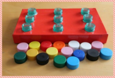 11. " Запомни и повтори" Эта игра поможет развить внимание, память. Для нее необходимы две карточки (разделенных на 9 квадратов) и два набора пуговиц (18 штук попарно одинаковых). Один игрок ведущий, он раскладывает на своем поле несколько пуговиц. Второй игрок запоминает. Затем поле накрывается платком, и второй игрок на своем поле должен разложить пуговицы так же, как у ведущего. Сначала можно тренироваться на небольшом количестве, добавляя постепенно.