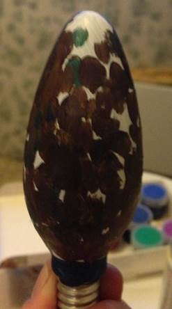 Рисунок 5- Лампочка в грунте [Архив Фокиной 2014 года] 3. Смешиваем нужные цвета: коричневый, охра, белый, темно зеленый. Смешиваем и быстрыми мазками разными оттенками закрашиваем поверхность лампочки (рисунок 6 и 7).
