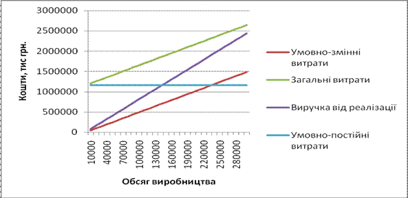 Рис. 1. Визначення беззбиткового та ефективного обсягів виробництва