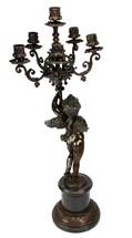 Превосходная работа европейских скульпторов. Эти роскошные, шикарные подсвечники позиционируются как старинные, антикварные вещи, хотя работа современная. Особое внимание и старание скульпторы направили на сами канделябры с невообразимым, завораживающим орнаментом. Каждый рожок прикручен (ничего ни припаяно или приварено), любая штука гнётся, одним словом все технологии изготовления были сохранены. Основание подсвечника представляет собой симпатичного ангелочка с крылышками, обхватившего руками основание канделябра. Натуральный огонь свечи вкупе с такими подсвечниками, словно гости из прошлого станут желанными предметами интерьера там, где ценят уют и искусство создавать особую атмосферу. В паре с подсвечником " Ангелочек в дорогой оправе" (правый) создаст единый ансамбль и станет украшением интерьера Вашего дома.