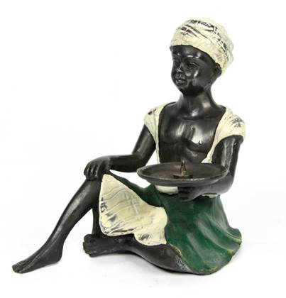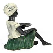 Небольшие, симпатичные подсвечники работы европейского скульптора. Бразильский мальчик - слуга в пёстрой, летней одежде держит, словно поднос на руке, рожок для свечи. Взгляд мальчика умён и по юношески светел. Статуэтка расскрашена под старину, создаётся ощущение, что краски от времени немного потускнели. Милая, добрая вещичка, вызывающая исключительно положительные эмоции и наполняющая пространство весёлым, летним настроением.