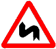 1.3.1 , 1.3.2 " Несколько поворотов". Участок дороги с двумя и больше расположенными один за одним опасными поворотами: 1.3.1 - с первым поворотом в правую сторону, 1.3.2 - с первым поворотом в левую сторону.