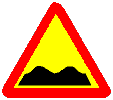 1.11 " Холм". Участок дороги с буграми, наплывами или неплавной стыковкой конструкций мостов. Знак также может применяться перед искусственно создаваемыми буграми в местах, где необходимо принудительно ограничить скорость движения транспортных средств (опасные выезды с близлежащих территорий, места с интенсивным движением детей через дорогу и т.п.).