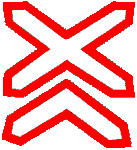 1.30 " Многоколейная железная дорога". Обозначение не оборудованного шлагбаумом переезда через железную дорогу с двумя и больше колеями.