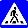 5.35.1 и 5.35.2 " Пешеходный переход". Знак 5.35.1 устанавливается с правой стороны от дороги на ближней границы перехода, а знак 5.35.2 - с левой стороны от дороги на дальней границе перехода.