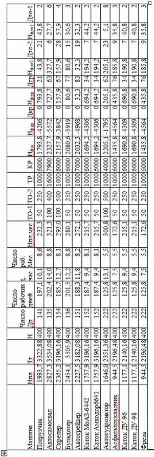 Расчет план-графика выполняем для каждой машины результат сводим в таблицу 7.1(ввиду большого количества машин предоставляем результаты только для одной машины каждого вида).