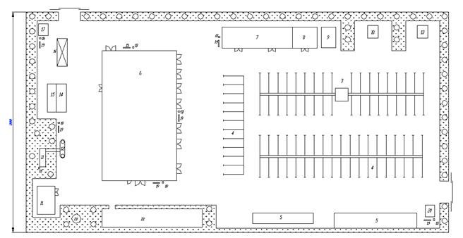 где FСК – площади складов, находящиеся в корпусе(запасных частей и инструмента); kПР – коэффициент проходов и проездов. kПР =1, 2. Fпр.быт=(91, 5+704+313+235, 3)·1, 2=1612, 5 м2. Компоновка производственного корпуса и построение генплана