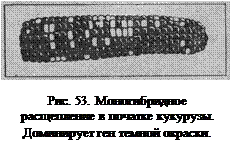 При правильном ведении опыта в F1 все семена будут окрашены, а в F2 75% семян окрашены и 25% не окрашены. Характер наследования окраски семян у кукурузы изображен на рисунке 53. Выводы по опыту использовать для демонстрации менделевского расщепления.