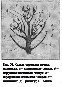 Подготовка к скрещиванию. При подготовке колоса к скрещиванию ножницами срезают ости и пинцетом удаляют 4—5 недоразвитых колосков в верхней и нижней части колоса. В каждом из оставшихся колосков оставляют только 2 нижних, наиболее развитых цветка. Все остальные, цветки удаляют пинцетом. После такой предварительной подготовки в колосе остается 10— 15 цветков. Биология цветения. Цветки у пшеницы обоеполые, имеют пестик и три тычинки (рис. 55). Созревание пыльников в цветках происходит несколько позже пестика, поэтому кастрацию нужно проводить одновременно с опылением: в степной зоне — во время колошения, в лесной — через 3—5 суток после начала колошения. Кастрация. При кастрации колос придерживают большим пальцем левой руки. Указательным пальцем этой же руки слегка нажимают на верхушки цветочных чешуй, которые расходятся, образуя щель. В эту щель в сжатом состоянии вводят пинцет, немного раздвигают чешуи и осторожно, стараясь не повредить рыльце пестика, удаляют все три тычинки в цветке. Начинать кастрацию лучше всего с нижнего колоска. Закончив кастрацию обоих цветков нижнего колоска, переходят к следующему, выше лежащему колоску. Скастрировав все цветки одного ряда, колос поворачивают и кастрируют цветки второго ряда в том же порядке. После окончания кастрации всех цветков следует проверить, не остались ли в них тычинки (см. рис. 54). Изоляция. На кастрированный колос надевают изолятор, изготовленный из листка пергаментной бумаги размером 15× 15 см. На изоляторе указывают название сорта, дату кастрации, количество скастрированных цветков. Сбор и хранение пыльцы. Пыльцу для опыления собирают с цветков отцовского сорта. Для этого зрелые, но нелопнувшие пыльники осторожно отрывают пинцетом и помещают в баночку или пакетик. Собирать пыльцу нужно в 7—10 ч утра. Перед сбором пинцет и руки следует протереть спиртом. Если имеется большое количество растений отцовского сорта, можно ножницами срезать 10—20 цветущих колосьев, а затем вынуть из них пыльники. Хранить пыльцу надо в сухом и прохладном месте, лучше всего в эксикаторе или в банке с притертой пробкой, на дно которой надо насыпать хлористый или углекислый кальций, покрыв его слоем ваты. Температура хранения должна быть близкой к 0°С. Собирая пыльцу, нужно иметь в виду, что жизнеспособность пыльцы злаковых очень ограничена и при благоприятных условиях хранения составляет всего 2—3 суток. Чтобы обеспечить лучшее опыление, посев отцовских растений следует проводить в несколько сроков или применять подкормки для ускорения цветения. Опыление нужно проводить в 7—10 ч утра, когда на рыльце выступит капелька жидкости. Перед опылением с кастрированного колоса материнского сорта нужно снять изолятор и в каждый цветок вложить 1—2 пыльника отцовского сорта или нанесли на рыльце высыпавшуюся пыльцу. Опыление проводят в том же порядке, в каком проводили кастрацию. Опыленный колос снова изолируют. На изоляторе или специальной этикетке делают надпись, которая должна иметь следующий вид: Культура — озимая пшеница ♀ сорт — Одесская 3 и ♂ сорт − Безостая 1 Дата кастрации.. Дата опыления… Кастрировано цветков… Гибридизатор… Повторное опыление. Чтобы обеспечить лучшее завязывание семян, на следующий день рекомендуется провести повторное опыление. Определение завязывания семян. Результаты с