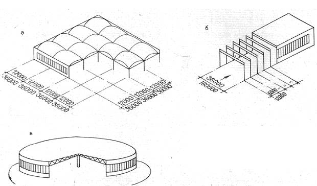 Рис. 1.8. Одноэтажные промышленные здания а – ____________________________________________________________________________ б – ____________________________________________________________________________ в – ____________________________________________________________________________ По конструктивной схеме одноэтажные здания бывают: - ___________________________________________________________________ - __________________________________________________________________ __________________________________________________________________________________________________________________________________________________________________________________________________________________ - ___________________________________________________________________ ____________________________________________________________________________________________________________________________________________ - ___________________________________________________________________ ____________________________________________________________________________________________________________________________________________