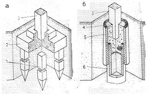 Рис. 2.4. Столбчатые фундаменты на сваях а – ____________________________________________________________________________ б – ____________________________________________________________________________ 1 – ____________________________________________________________________________ 2 – ____________________________________________________________________________ 3 – ____________________________________________________________________________ 4 – ____________________________________________________________________________ 5 – ____________________________________________________________________________ 6 – ____________________________________________________________________________