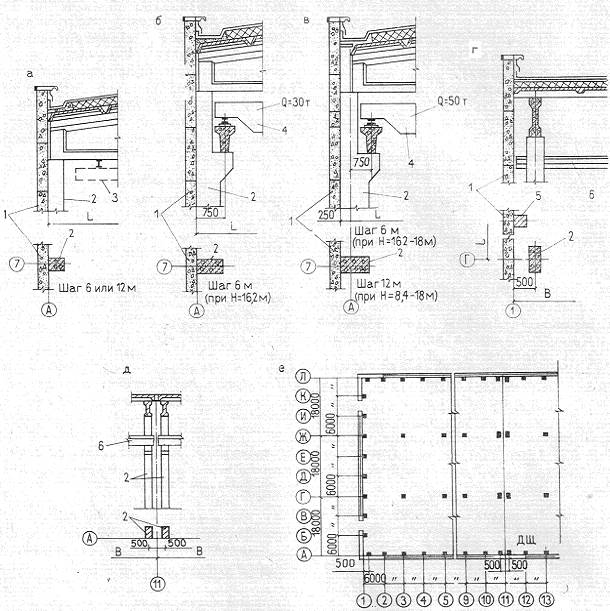 Рис. 9.1. Привязка несущих конструкций одноэтажных промышленных зданий к разбивочным осям а – ____________________________________________________________________________ б – ____________________________________________________________________________ в – ____________________________________________________________________________ г – ____________________________________________________________________________ д – ____________________________________________________________________________ е – ____________________________________________________________________________ 1 – ____________________________________________________________________________ 2 – ____________________________________________________________________________ 3 – ____________________________________________________________________________ 4 – ____________________________________________________________________________ 5 – ____________________________________________________________________________ 6 – ____________________________________________________________________________ __________________________________________________________________________________________________________________________________________________________________________________________________________________________________________________________________________________________________________________________________________________________________________________________________________________________________