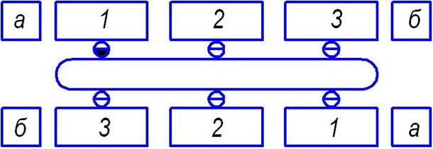 Рисунок 3 а – места для заготовок; б – места для обработанных деталей; 1, 2, 3 – станки.