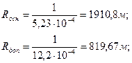 2. Определим радиусы искривления основного и дополнительного стволов: