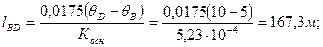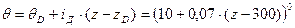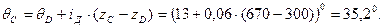 5. Зададимся глубиной забурки дополнительного ствола, то есть зададим координату z точки D, примем zD =300 м, тогда, пользуясь уравнением (2), определим вторую координату и азимут в этой точке: