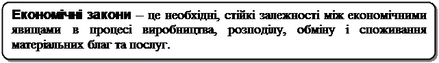 Причинно-наслідкові зв’язки відображаються в законах, коли залежності між причиною та наслідком є однозначними. При цьому взаємодія різних сил приводить до цілком імовірного наслідку, про який суспільству вже відомо або ще невідомо, якщо знання про сукупність взаємодіючих сил недостатні. У економічній науці термін “закон” використовується у випадках, коли встановлені найбільш істотні (суттєві, глибинні) залежності між дією різноманітних сил та економічними наслідками їх взаємодії.