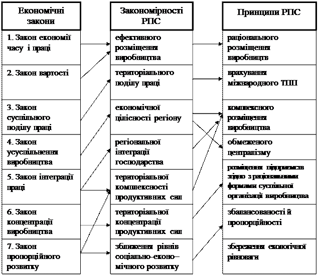 РПС і формування економіки регіонів здійснюється під впливом об’єктивних законів і закономірностей.