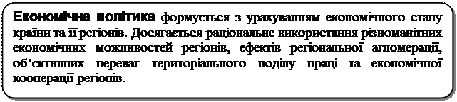 Регіональна економічна політика включає: ð бюджетну та податкову політику, що дозволяє здійснити заходи, спрямовані на зміцнення місцевих бюджетів, розширення прав місцевих органів влади і органів місцевого самоврядування в бюджетній політиці, збільшення частки закріплених доходів у бюджетах всіх рівнів і встановлення науковообґрунтованих нормативів відрахувань місцевим бюджетам від державних податків; ð планування, прогнозування і програмування соціально-економічного розвитку регіону; ð розміщення продуктивних сил і структурні перетворення в регіоні; ð політику розвитку регіональних комплексів (агропромислового, будівельного, транспортного); ð контрольно-економічну діяльність; ð інформаційне забезпечення.