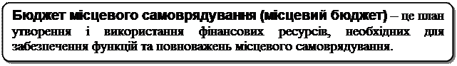 Доходи місцевих бюджетів формуються за рахунок власних джерел та закріплених у встановленому порядку загальнодержавних податків, зборів та інших обов’язкових платежів. Мінімальний бюджет місцевого самоврядування – це розрахунковий обсяг місцевого бюджету, необхідний для здійснення повноважень місцевого самоврядування на рівні мінімальних соціальних потреб, який гарантується державою. Місцевий бюджет поділяється на такі види: 1) районний бюджет – план утворення і використання фінансових ресурсів, необхідних для забезпечення спільних інтересів територіальних громад сіл, селищ, міст районного значення, виконання місцевих програм, здійснення бюджетного вирівнювання; 2) обласний бюджет – план утворення і використання фінансових ресурсів, необхідних для забезпечення спільних інтересів територіальних громад, виконання місцевих програм, здійснення бюджетного вирівнювання; 3) поточний бюджет – доходи і видатки місцевого бюджету, які утворюються і використовуються для покриття поточних видатків; 4) бюджет розвитку – доходи і видатки місцевого бюджету, які утворюються і використовуються для реалізації програм соціально-економічного розвитку, зміцнення матеріально-фінансової бази.