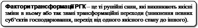З переходом до ринкових відносин РГК інтенсивно трансформується під впливом певних факторів та умов.