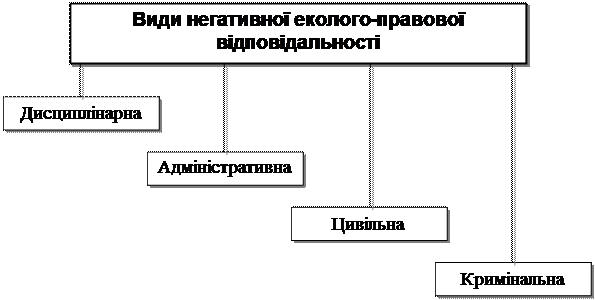 Порушення законодавства України про охорону навколишнього природного середовища тягне за собою дисциплінарну, адміністративну, цивільну і кримінальну відповідальність (рис. 13.3).