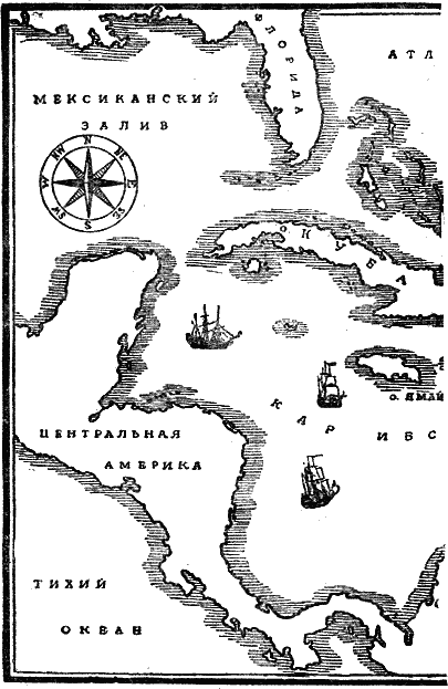 Он прильнул к окуляру подзорной трубы и не поверил своим глазам, увидев, что пироги, шедшие на буксире за пиратскими кораблями, были подтянуты к бортам. Он не мог понять этого манёвра, но следующий манёвр удивил его ещё больше: побыв некоторое время у противоположных бортов кораблей, пироги одна за другой уже с вооружёнными людьми появились снова и, обойдя суда, направились в сторону острова. Лодки шли по направлению к густым кустарникам, сплошь покрывавшим берег и вплотную подходившим к воде. Адмирал, широко раскрыв глаза, следил за лодками до тех пор, пока они не скрылись в прибрежной растительности.
