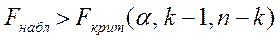 определяется по таблице распределения Фишера. Множественный коэффициент корреляции считается значимым, т. е. имеет место линейная статистическая зависимость, между