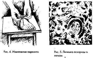 Заразное начало гельминтов — яйцо, личинка. Развитый гельминт — половозрелая форма. Яйцо или личинка при заглатывании развивается либо непосредственно в ЖКТ, либо совершает миграцию — перемещение. При этом личинки гельминтов (аскариды, анкилостомиды) пробуравливают стенку кишки, попадают в кишечные вены и током крови заносятся в печень. Из печени они продвигаются в нижнюю вену, в правую половину сердца, а затем в легочную артерию — в легкое. Здесь личинки разрывают стенки кровеносных капилляров и проникают в легочные альвеолы, активно поднимаются в бронхи и трахею, а из нее в глотку. Смешиваясь со слюной, личинки проглатываются и достигают ЖКТ, где очень быстро вырастают во взрослых гельминтов. Они наносят механические повреждения кровеносным сосудам и тканям, что приводит к кровоизлияниям в участках повреждения и способствует проникновению в организм болезнетворных микроорганизмов.