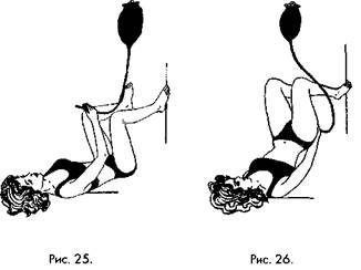 Введите резиновую трубку в анус на 3-5 сантиметров и разожмите пальцы, просвет раскроется, трубка разогнется и вода начнет вливаться в кишечник. В позе «березка» вода лучше всего проникает в самые труднодоступные отделы ТОК (восходящий отдел). Можете наблюдать, как вода уходит из клизмы (рис. 26).