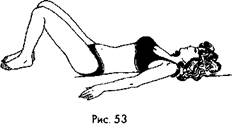 Асана: Задержка дыхания на четыре удара сердца. Выход из асаны: Ослабьте напряжение, отпустите носки и «замок», довыдохните, свободное дыхание. Эффект: Вытяжение позвоночника, улучшение кровообращения межпозвоночных хрящей, профилактика и восстановление иннервации органов и предупреждение грыжи дисков. Избавляет от паховой и пупковой грыж. 3. Закрут «Разбудим кишечник» Исходное положение: Из положения лежа на спине согните ноги в коленях, обопритесь ступнями на коврик. Вдох (рис. 53).