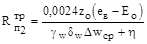 В формулах (34) и (35): ев — упругость водяного пара внутреннего воздуха, Па, при расчетной температуре и влажности этого воздуха; Rп.н — сопротивление паропроницанию, м2 • ч • Па/мг, части ограждающей конструкции, расположенной между наружной поверхностью ограждающей конструкции и плоскостью возможной конденсации, определяемое в соответствии с п. 6.3; ен - средняя упругость водяного пара наружного воздуха, Па, за годовой период, определяемая согласно СНиП 2.01.01-82; zo — продолжительность, сут, периода влагонакопления, принимаемая равной периоду с отрицательными среднемесячными температурами наружного воздуха согласно СНиП 2.01.01-82; Ео — упругость водяного пара, Па, в плоскости возможной конденсации, определяемая при средней температуре наружного воздуха периода месяцев с отрицательными среднемесячными температурами; gw — плотность материала увлажняемого слоя, кг/м3, принимаемая равной gо по прил. 3*; dw — толщина увлажняемого слоя ограждающей конструкции, м, принимаемая равной 2/3 толщины однородной (однослойной) стены или толщине теплоизоляционного слоя (утеплителя) многослойной ограждающей конструкции; Dwср — предельно допустимое приращение расчетного массового отношения влаги в материале (приведенного в прил. 3*) увлажняемого слоя, %, за период влагонакопления zo, принимаемое по табл. 14*; Е — упругость водяного пара, Па, в плоскости возможной конденсации за годовой период эксплуатации, определяемая по формуле