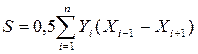 По координатам точек построенного замкнутого теодолитного хода вычисляется площадь полигона по формулам: