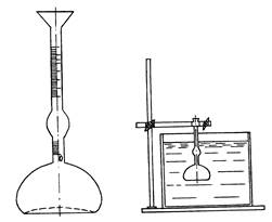 Рис. 1. Объемомер Ле-Шталье-Кандло Дав прибору немного постоять для удаления вовлеченного при всыпании воздуха, снимают с точностью до 0, 1 дм3 отсчет объема вытесненной жидкости по нижнему мениску и вычисляют плотность материала по формуле