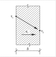 где τ 1, τ 2 - значения температуры на поверхностях стенки, оС. Из выражения (2.3) следует, что распределение температуры по толщине стенки линейное. Величина δ /λ названа термическим сопротивлением материального слоя и обозначена RТ, м2. оС/Вт: