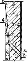 По своему физическому смыслу сопротивление паропроницанию слоя ограждения - это разность упругостей водяного пара, которую нужно создать на поверхностях слоя, чтобы через 1 м2 его площади диффундировал поток пара, равный 1 мг/ч. Общее сопротивление паропроницанию ограждающей конструкции (при диффузии пара) складывается из сопротивлений паропроницанию всех его слоев и сопротивлений влагообмену на его поверхностях, как это следует из выражения (2.43). Коэффициент влагоотдачи, как правило, в инженерных расчетах общего сопротивления паропроницанию не применяется, в расчетах используют непосредственно сопротивления влагоотдаче на поверхностях, принимая их значения равными Rп. в= 0, 0267 м2. ч. Па/мг, Rп. н, = 0, 0052 м2. ч. Па/мг [4]. Упругость водяного пара, диффундирующего через ограждение, по мере прохождения через его толщу будет изменяться между значениями ев и ен. Для нахождения парциального давления водяного пара ех в любом сечении ограждения (рис.9) пользуются формулой, аналогичной формуле (2.30) для определения распределения температуры по сечению ограждения:
