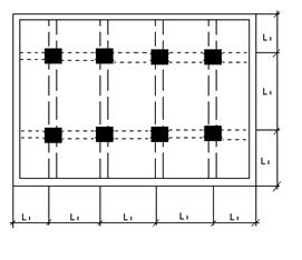 Существуют два вида таких перекрытий. В перекрытиях первого вида балки располагаются по осям колонн, шаг которых 4…6м. балки имеют одинаковую высоту поперечных сечений. Соотношение сторон 1…1, 5. Перекрытия 2-го типа, называемые клеонными, отличаются более частым расположением балок, отсутствием промежуточных колонн и малыми размерами плит, не превышающими 2м. Перекрытия с плитами, опертыми по контуру, менее экономичны, чем с балочными плитами, при той же сетке колонн, но эстетически они выгладят лучше и применяются для перекрытия зданий общественного назначения: залов… Плита опертая по контуру, работает в 2-х направлениях и армируется связанными сетками, укладываемыми в пролете по низу, а у опор(над балками)- поверху, при пролётах плиты более 2, 5м применяют раздельное армирование.