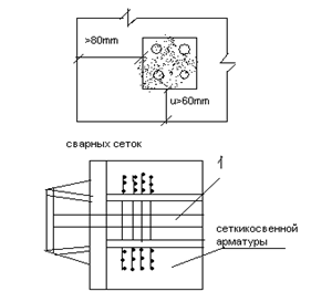 Продольную ненапрягаемую арматуру следует располагать ближе к наружной поверхности конструкция, чем напрягаемую, так, чтобы напрягаемая арматура оказалась внутри контура поперечной арматуры (хомутов). В элементах с продольной арматурой, натягиваемой на бетон и располагаемой в каналах, толщина защитного слоя от поверхности канала должна составлять не менее 20мм. при расположении в одном канале пучков, прядей или стержней толщина защитного слоя должна составлять для боковых стенок не менее 80, а для нижних не менее 60мм. Зазоры в свету могут отдельными натягиваемыми стержнями, пучками и прядями должны быть не менее диаметра арматуры и не менее 25мм. Для обеспечения надежности передачи обжимающего усилия на бетон у концов предварительно напряженных конструкций устанавливают косвенную арматуру в виде сварных сеток