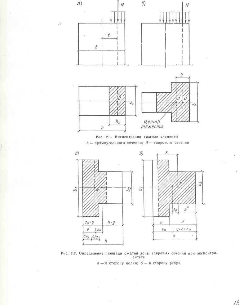 Для таврового сечения расстояние х от точки приложения силы Nдо границы сжатой зоны определяется в зависимости от эксцентриситета. При эксцентриситете в сторону полки (рис. 2.2, а)