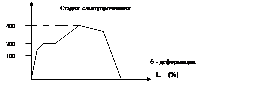 Характерными для углеродистой стали Ст3 являются пределы пропорциональности δ …, текучести δ m и временное сопротивление δ в. До достижения предельной пропорциональности сталь работает упруго и является деформациями Е и напряжениями δ. Существующая линейная зависимость, выражаемая законом Гука Е= δ /ε, где Е – модуль продольной деформации. За пределом пропорциональности деформации растут быстрее напряжений, начинается пластичная работа стали, соответствующая образованию на диаграмме площадки текучести с постоянным напряжением. При дальнейшем растяжении напряжение опять увеличивается; и после достижения временного сопротивления начинается разрушение.