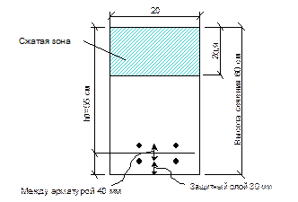 Тавровое сечение ригеля заменяем эквивалентным прямоугольным со сторонами 20 и 60 см.